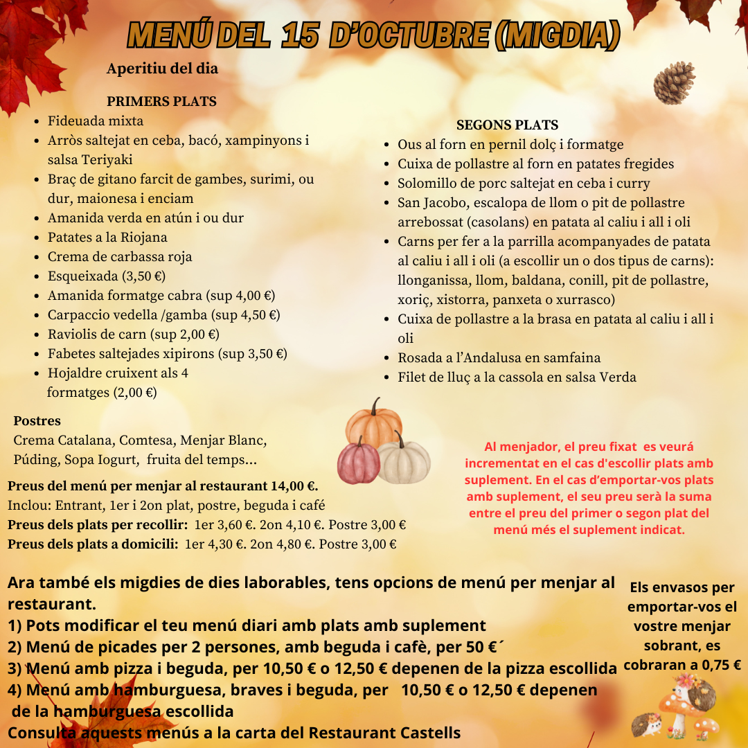Fem entrega de menjars al local i servei a domicili a la zona de Tortosa, Roquetes, Amposta i voltants.