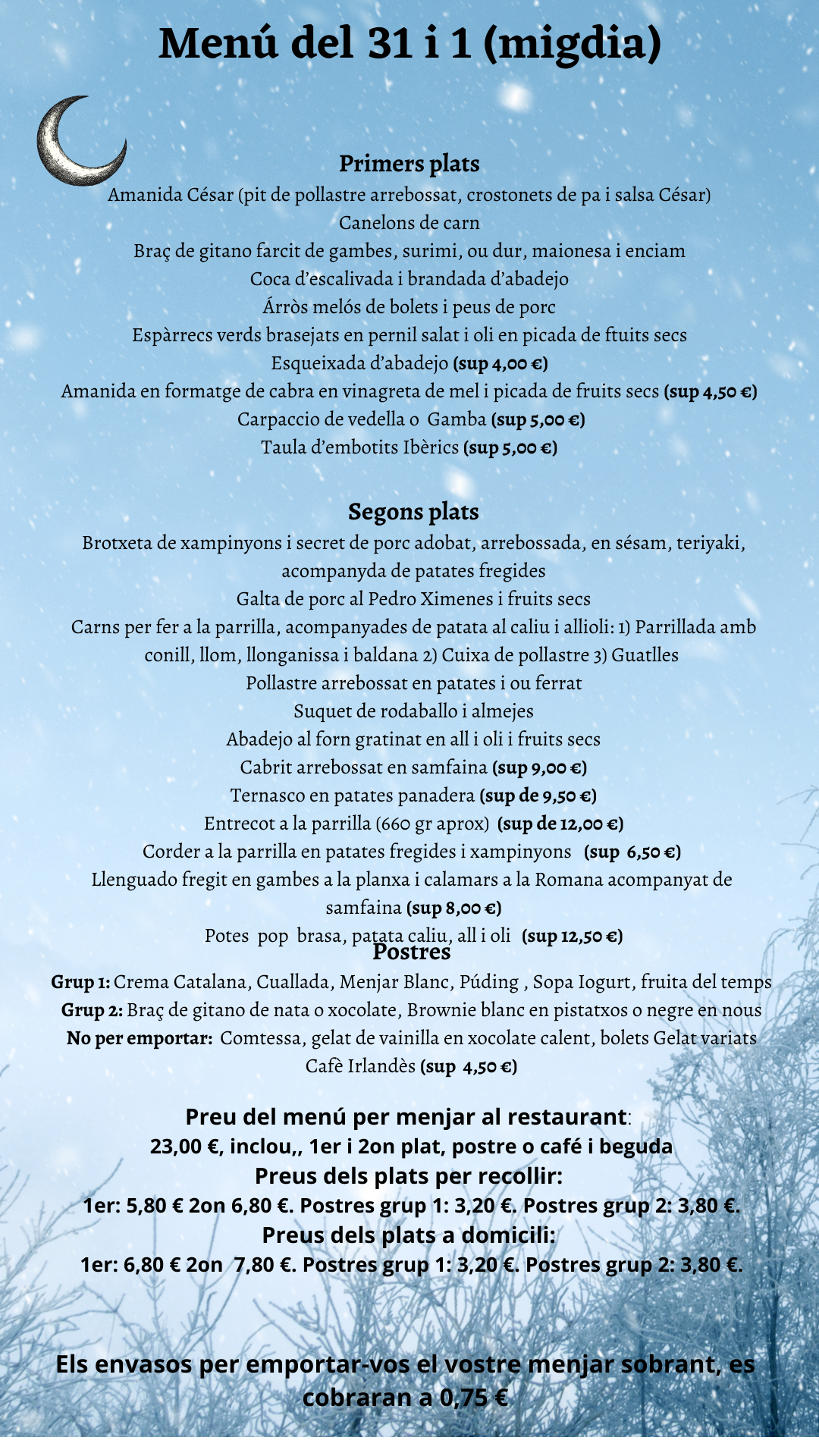 Menú del 31 de gener i 1 de febrer. Només migdia.